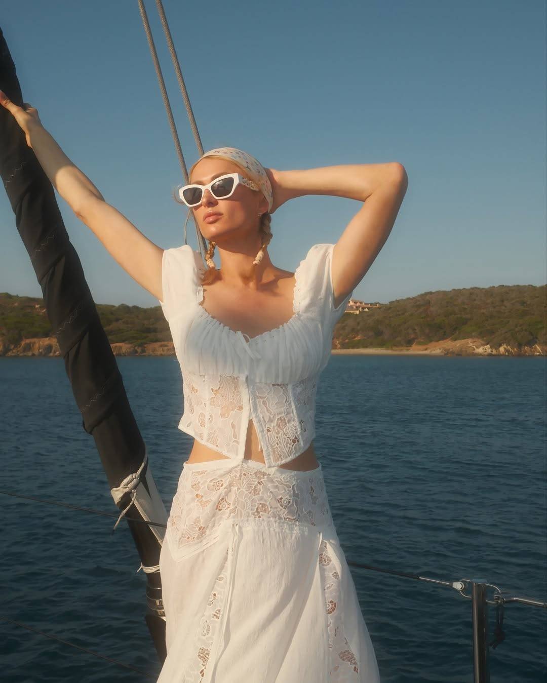 وقالت هيلتون تعليقاً على صورها في “إنستغرام”: “إنه صيف أبيض حار، لا أريد لهذه الرحلة أن تنتهي أبداً، ولكن لا تقلقوا، فهناك المزيد من الإطلالات التي يمكن تقديمها”.