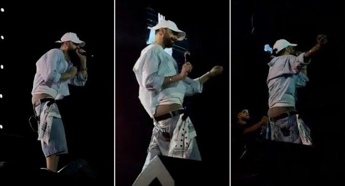 وانتشرت عبر مواقع التواصل الإجتماعي، العديد من مقاطع الفيديو من الحفل، والتي أظهرت شهاب وهو يرتدي “شورتًا”، بدا وكأنه على وشك السقوط، وكاد يكشف ما لا يُفترض كشفه.