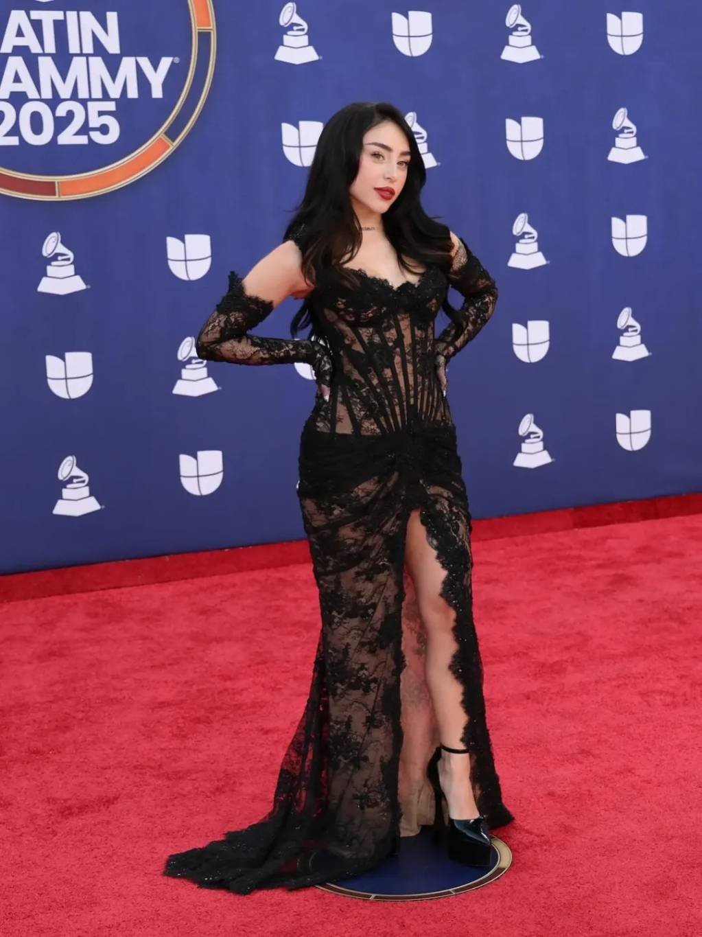 واختارت النجمة اللبنانية فستاناً أنيقاً باللون الأزرق السماوي “البيبي بلو”، وتميّز بتصميمه الناعم والأنيق الذي يحمل توقيع المصممة ماريان بشارة. وجاء الفستان بتصميم ضيق من الأعلى ويلتف على الخصر مع فتحات عند الأطراف وبحمالات رفيعة جداً، مع تصميم القلب عند ناحية الصدر لينسدل بتنورة انسيابية واسعة مع تكسيرات رفيعة تصل الى حدود الأرض.